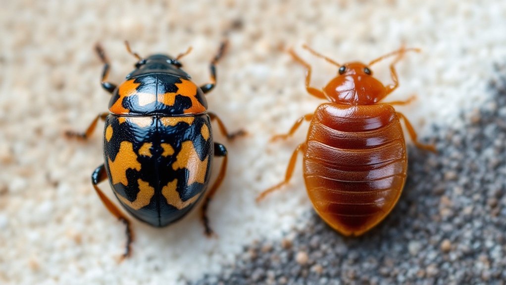 Carpet beetles and bed bugs are sometimes confused because of their small size and brownish coloring. However, bed bugs are flat, oval, and feed on blood, while carpet beetles are rounder and feed on natural fibers. Mistaking them can delay proper pest control and increase the risk of bites in the case of bed bugs.
