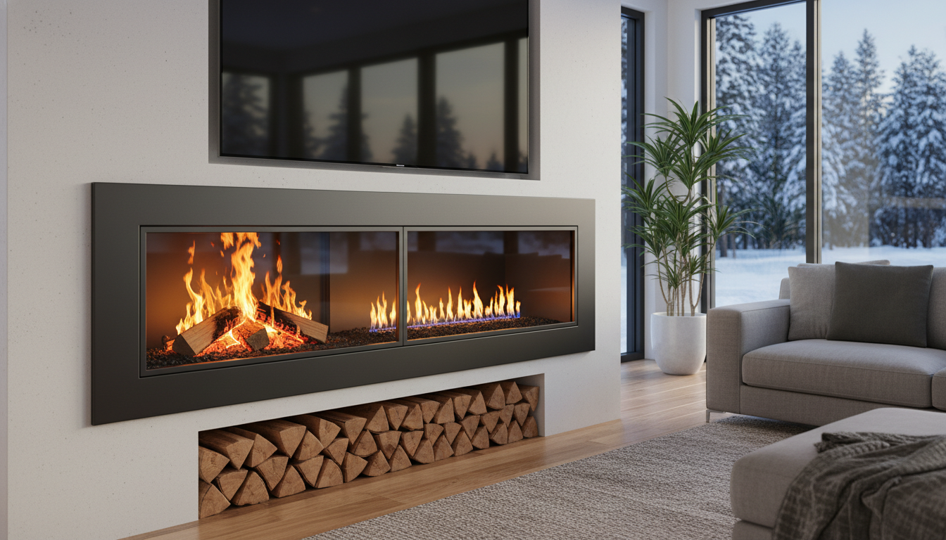 A dual gas and wood burning fireplace provides a versatile, hybrid heating solution, effortlessly combining the timeless warmth of wood with the instant convenience of gas. Enjoy the rustic charm