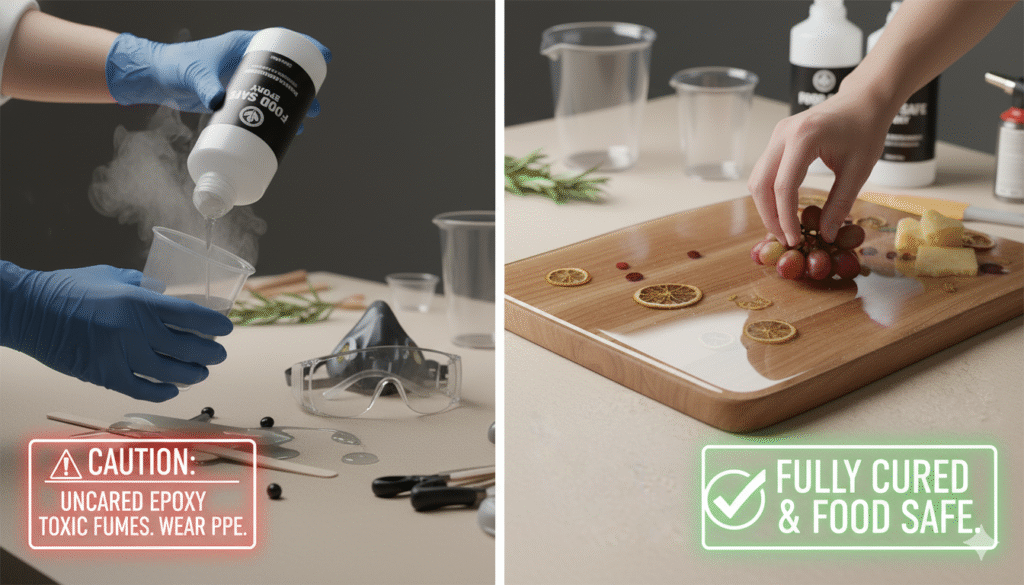 Using food-safe epoxy responsibly requires understanding the product, following proper curing procedures, and verifying certifications such as FDA or NSF approval. While cured epoxy is generally non-toxic and safe for food contact, improper mixing, insufficient curing, or exposure to excessive heat can compromise safety.