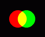 This happens because additive mixing blends wavelengths of light, and the combination of red + green stimulates the eye in a way that produces the perception of yellow.